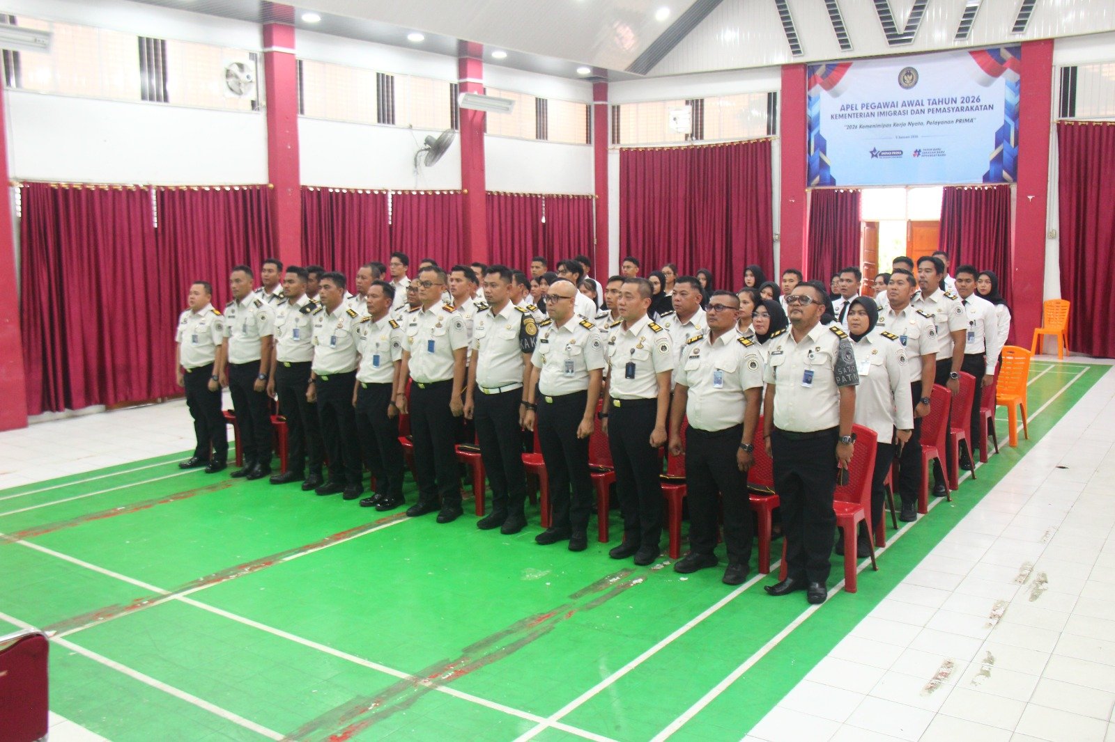 Mengusung tema “2026 Kemenimipas Kerja Nyata, Pelayanan PRIMA”, apel pegawai awal tahun ini menjadi momentum penting dalam mengawali pelaksanaan tugas dan fungsi Kemenimipas di tahun 2026, sekaligus sebagai sarana untuk menyatukan komitmen dan semangat seluruh aparatur dalam memberikan pelayanan terbaik kepada masyarakat.