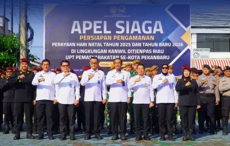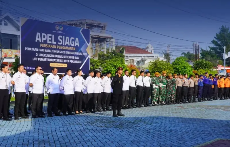 Potretterkini.com – PEKANBARU – Kantor Wilayah Direktorat Jenderal Pemasyarakatan (Ditjenpas) Riau melaksanakan Apel Siaga dalam rangka menyambut Perayaan Natal Tahun 2025 dan Tahun Baru 2026.