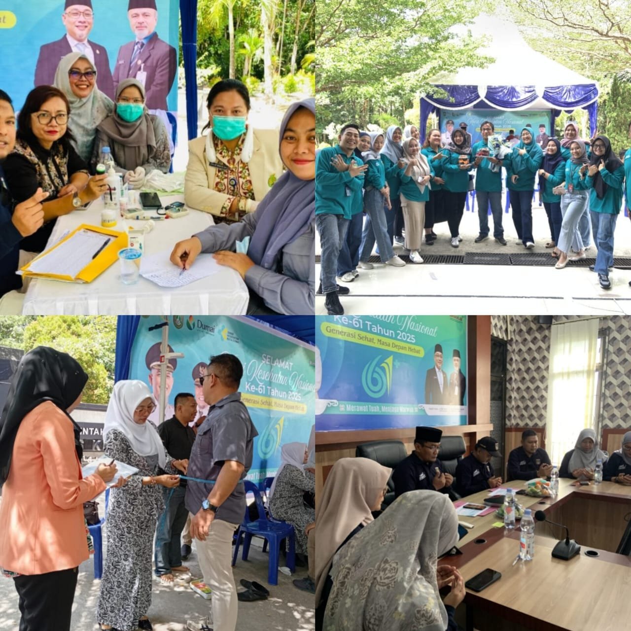 Dalam rangka memperingati Hari Kesehatan Nasional (HKN) ke-61 Tahun 2025, Dinas Kesehatan Kota Dumai menyelenggarakan kegiatan Pemeriksaan/ Cek Kesehatan Gratis ( CKG ) bagi masyarakat serta seluruh pegawai di lingkungan perkantoran Walikota Dumai .