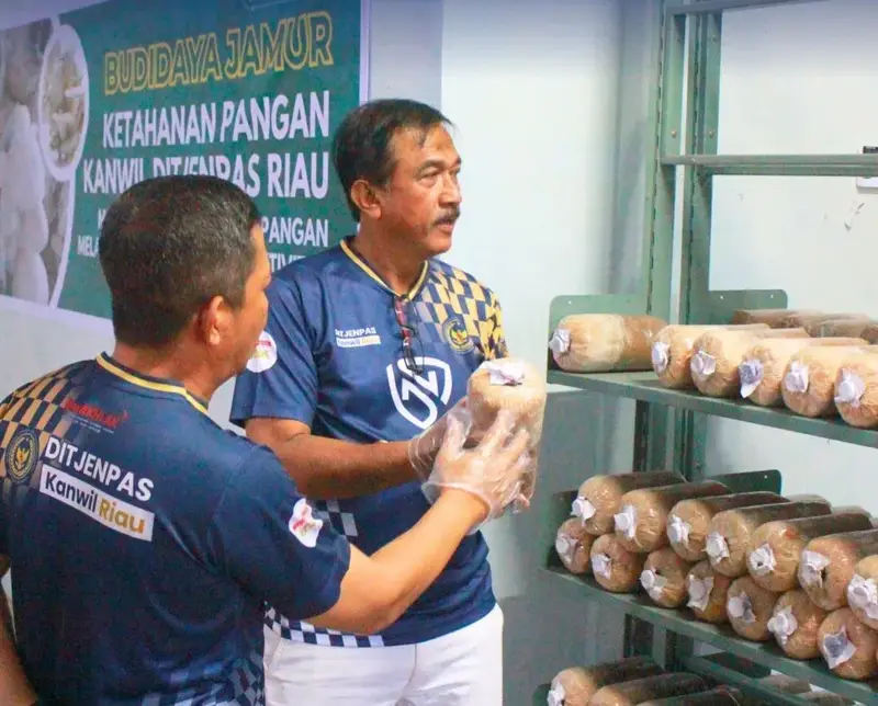 Potretterkini.com – PEKANBARU – Dalam rangka mendukung penguatan ketahanan pangan dan peningkatan produktivitas, Kantor Wilayah Direktorat Jenderal Pemasyarakatan (Kanwil Ditjenpas) Riau melaksanakan kegiatan budidaya jamur tiram yang dilakukan secara mandiri oleh para petugas, Jumat (12/12/2025).