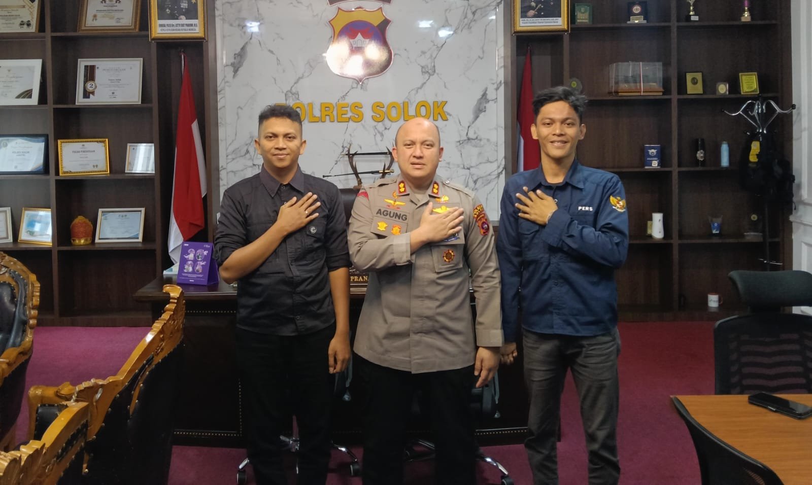 M Nur Fahmi Kaperwil Sumbar menyampaikan ucapan terima kasih kepada Kapolres Solok Arosuka AKBP Agung Pranajaya, S.I.K menerima langsung Silaturahmi kami ini, dan berharap, silaturahmi antara Insan Pers dan Polres Solok Arosuka semakin erat dan harmonis. “Ujar Fahmi selaku Kaperwil Sumbar Media Online detikterkini24