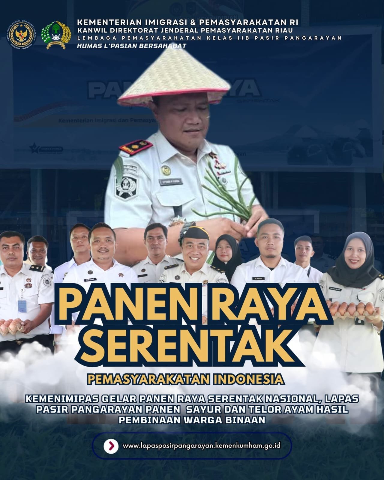 Dalam kegiatan Panen Raya ini, Lapas Pasir Pangarayan berhasil memanen sayuran dan telor ayam, yang merupakan hasil dari program pembinaan kemandirian warga binaan di bidang pertanian.