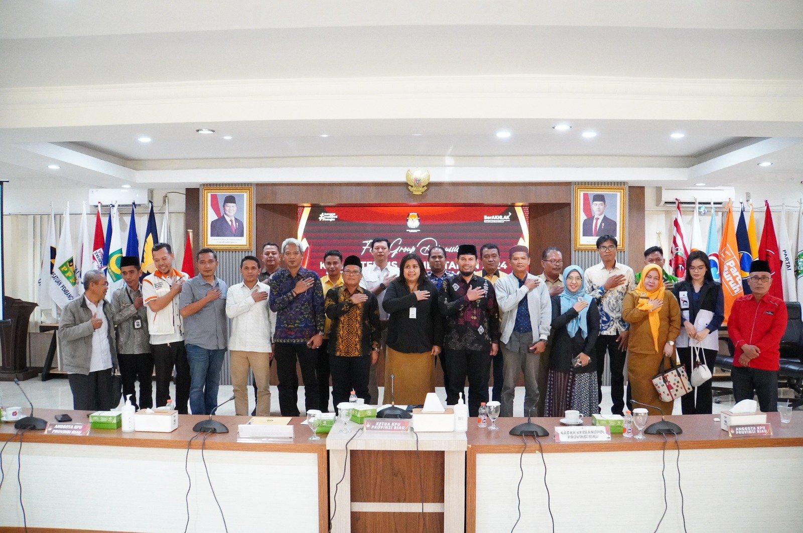 Dihadiri oleh perwakilan Partai Politik, LSM/NGO, Bawaslu, dan Kepala Badan Kesbangpol Provinsi Riau, serta KPU Kabupaten/Kota yang mengikuti secara Daring.