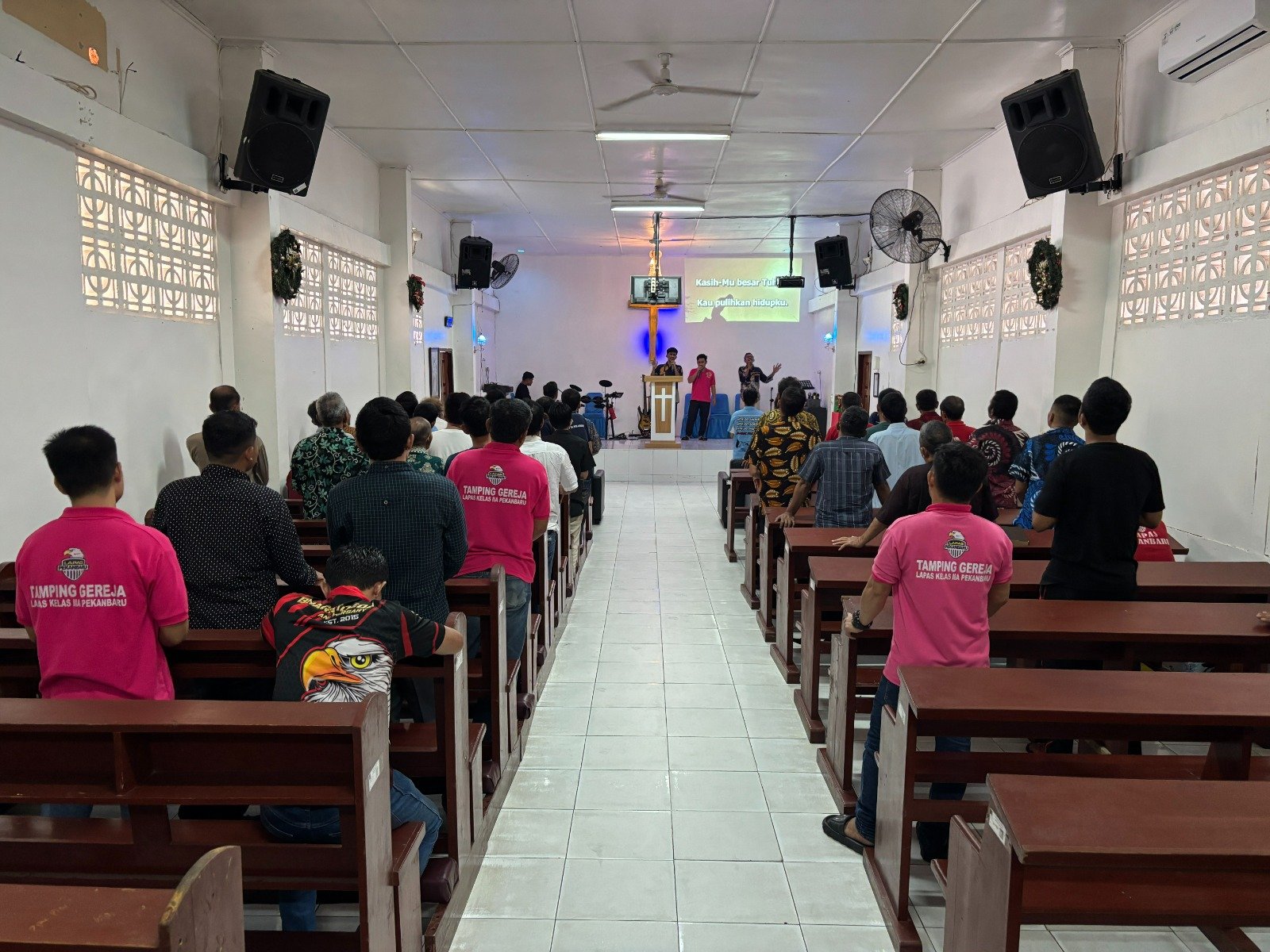 Potretterkini.com – PEKANBARU – Warga Binaan Pemasyarakatan (WBP) yang beragama Kristen di Lembaga Pemasyarakatan (Lapas) Kelas IIA Pekanbaru mengikuti kegiatan ibadah rutin yang dilaksanakan di Gereja Interdenominasi Lapas Kelas IIA Pekanbaru, pada Sabtu (24/01/2026).
