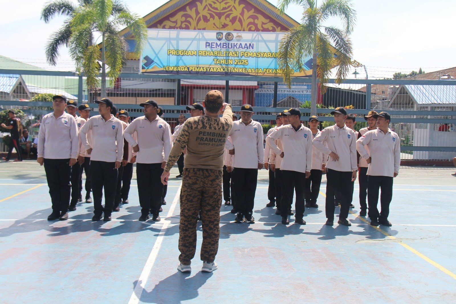 Potretterkini.com – PEKANBARU – Dalam rangka mendukung pelaksanaan program pembinaan kepribadian bagi Warga Binaan Pemasyarakatan (WBP), Lembaga Pemasyarakatan Kelas IIA Pekanbaru secara rutin melaksanakan kegiatan latihan Peraturan Baris Berbaris (PBB) melalui wadah kepramukaan setiap hari Sabtu. Kegiatan ini menjadi salah satu bentuk pembinaan yang bertujuan menumbuhkan disiplin, kerja sama, dan semangat kebangsaan di kalangan WBP, Sabtu (25/10/2025).