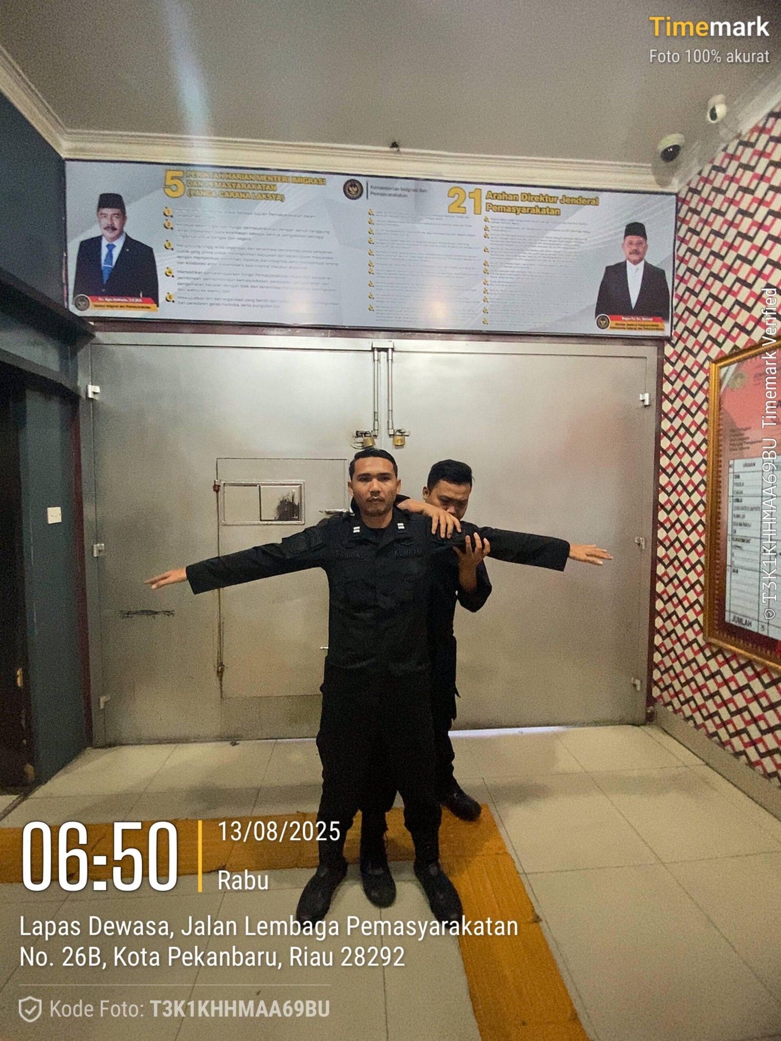 Potretterkini.com – PEKANBARU – Dalam rangka meningkatkan keamanan dan disiplin di lingkungan Lembaga Pemasyarakatan Kelas IIA Pekanbaru, petugas Pintu Utama (P2U) melakukan pemeriksaan rutin terhadap seluruh pegawai yang memasuki area kerja, Kamis ( 21/08/2025).