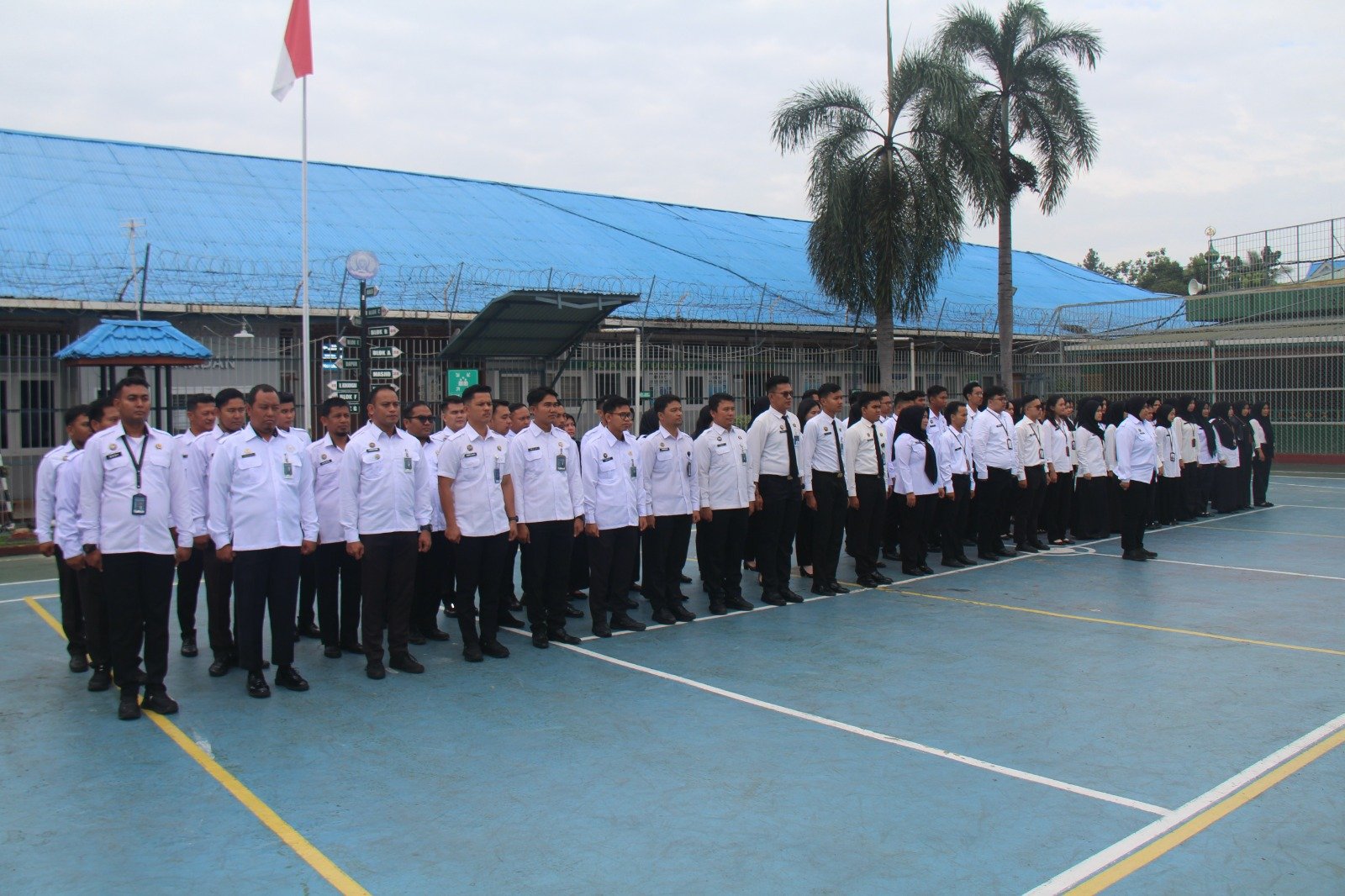 Potretterkini.com – PEKANBARU – Lembaga Pemasyarakatan (Lapas) Kelas IIA Pekanbaru melaksanakan apel pagi rutin pada hari Senin, yang kali ini dipimpin langsung oleh Kepala Kesatuan Pengamanan Lapas (KPLP), Pebri Sadam. Bertempat di Halaman Kantor Lapas Pekanbaru, apel pagi diikuti mulai dari Pejabat Struktural, Jabatan Fungsional Tertentu (JFT), Jabatan Fungsional Umum (JFU), peserta Maganghub Kemenaker Batch II, mahasiswa yang sedang melaksanakan Praktek Kerja Lapangan (PKL), sampai dengan satuan pengamanan yang diwakili oleh Petugas Pengamanan Pintu Utama (P2U) serta Komandan Jaga, Senin (08/12/2025).